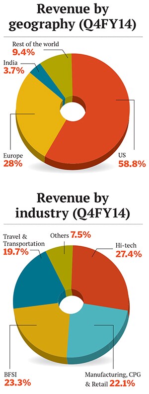 Similar suggestions were made for the high-tech business (semiconductors, consumer electronics, office automation, mobile, and gaming), which contributes over 27 percent, the largest chunk, to the company’s total revenue of $501.5 million in FY2014. Other major verticals of the company include BFSI (23.3 percent), manufacturing, consumer packaged goods and retail (22.1 percent) and travel and transportation (19.7 percent).