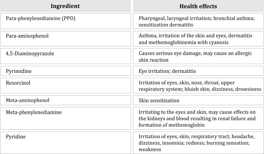 Hair dyes come in two forms: (i) oxidative (permanent) and (ii) nonoxidative (semi-permanent and temporary) (USFDA, 2014). Permanent dyes consist of primary intermediates (e.g., p-phenylenediamines (PPDs) and p-aminophenols) and couplers (e.g., m-aminophenols and m-hydroxyphenols) in the presence of peroxide (USFDA, 2014). Nonoxidative hair dyes include colored compounds that stain hair directly. Some of the chemicals used in hair dye products are reported to be carcinogenic in animals (Bolt and Golka, 2007). Likewise, the International Agency for Research on Cancer (IARC) reported that some of the chemicals in hair dye are probably carcinogenic to those who are exposed to them occupationally (e.g., hairdressers and barbers).