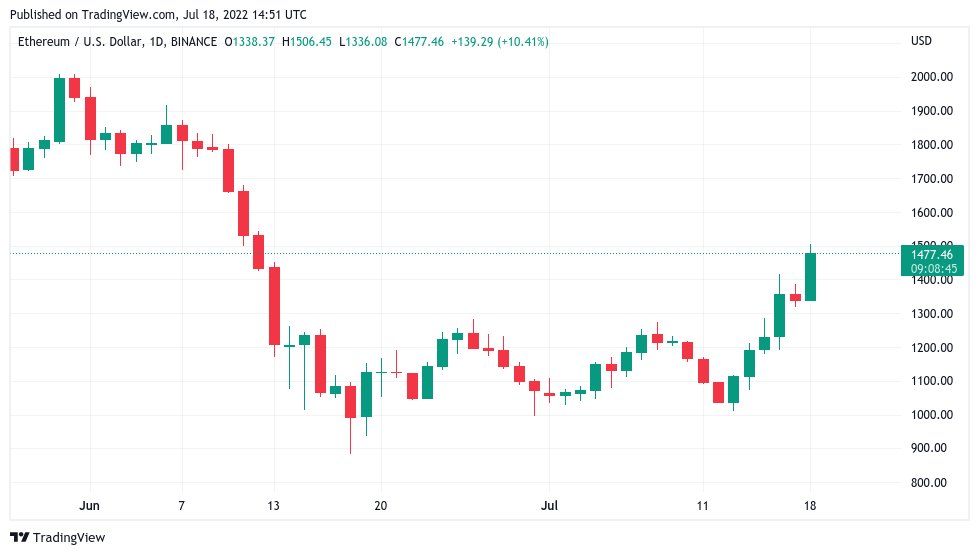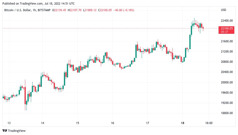 On July 18, as Wall Street opened, the price of Bitcoin (BTC) reached above $22,000, and the crypto market capitalization again soared above the $1 trillion mark. The crypto analysts stated that the bulls were holding strong.