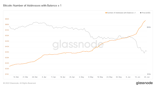 Small wallet addresses continue accumulating Bitcoin despite the bear market blues. The number of Bitcoin wallet addresses with one BTC or more rose by 13,091 in the past week. The continued enthusiasm for the largest crypto reflects the optimism in the market, notwithstanding the 2/3rd value drop Bitcoin has witnessed since its November ATH (all-time high).