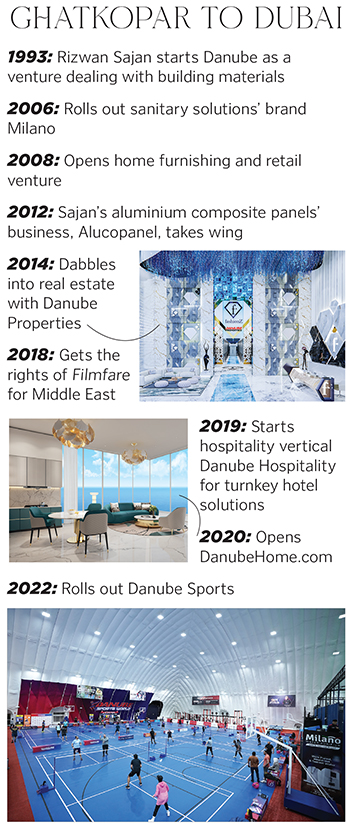 Is there anything common between Aston Martin, Fashion TV, Tonino Lamborghini Casa and Filmfare on one side, and the slums of Mumbai, one of the largest building materials companies in Dubai, and Danube Group—a diversified business conglomerate which clocked a turnover of $2 billion last year—on the other side? There is only one: Rizwan Sajan. The first-generation entrepreneur was born in the slums of Ghatkopar in Mumbai. After dropping out of school, he landed a job as a salesman in Kuwait, founded a trading firm in Dubai in 1993, went on to buy the rights for Filmfare magazine in the Middle East, and is now building luxury apartments and villas that have a tie-up with brands such as Aston Martin, Fashion TV and Tonino Lamborghini Casa to take care of the interiors of a suite of luxury residential projects.