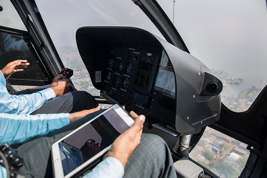 Karanpal Singh, founder of Hunch Ventures (left) and Blade India MD Amit Dutta (right)The deafening roar of the rotor blades is the first thing you notice, once comfortably tucked into your seats. The Airbus helicopter, with seating for six, ran full on the Thursday flight we took. Unlike a regular commercial flight, the copter hovers for a few minutes above the ground, before rising to about 700 feet. This is the maximum height it can fly to inside city limits, we’re told.