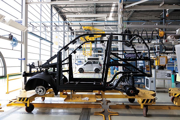 Mahindra Reva has pushed the envelope on what a factory should be. And in doing so, it has found that the greatest challenge to running a set-up such as this is employing people who are willing to challenge preconceived notions of how a plant should be run. Most of the 350 to 400 employees are people who have never worked at assembly line car facilities. The company spends two to three months training recruits, who are then absorbed after a certification process. Maini says the company’s efforts have paid off; attrition rates are lower than at other plants. Women employees make up 15 to 20 percent of the total workforce on the shop floor.
